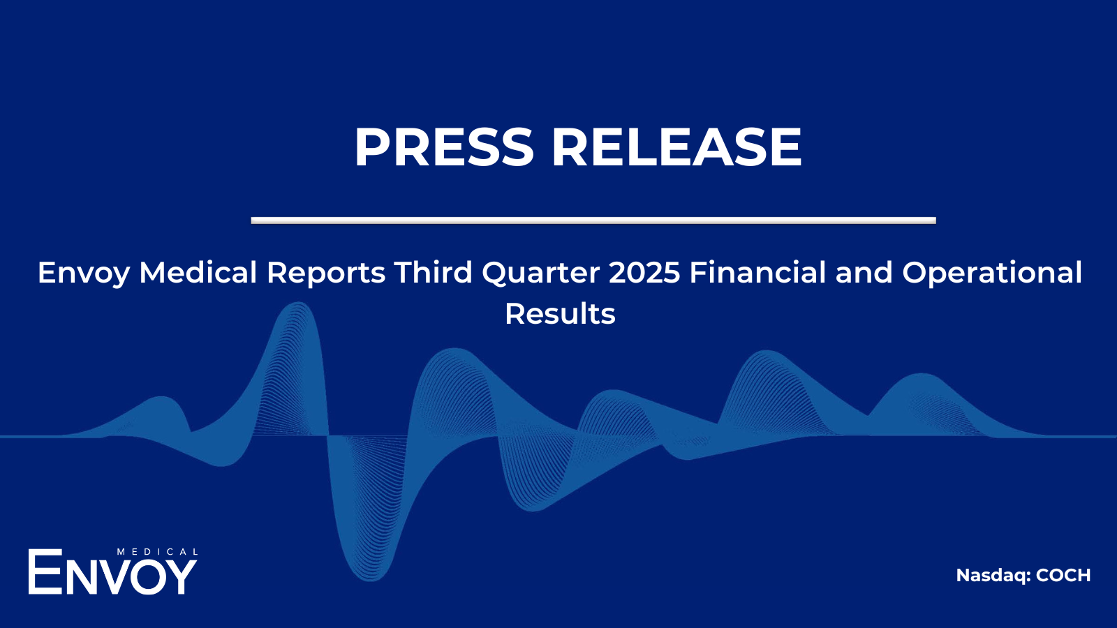 White Bear Lake, Minnesota--(Newsfile Corp. - November 10, 2025) - Envoy Medical®, Inc. (NASDAQ: COCH) ("Envoy Medical" or the "Company"), a hearing health company pioneering fully implanted hearing solutions, today announced its corporate and financial results for the third quarter ended September 30, 2025, as well as other subsequent events.